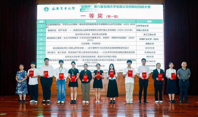 2025年8月21日至23日,“超图杯”第八届全国大学生国土空间规划技能大赛在山东农业大学成功举办。我院参赛团队表现出色,荣获国家一等奖,实现了我校在该赛事中国家一等奖零的突破,充分彰显了我院在国土空间规划教学与人才培养方面的扎实成效。