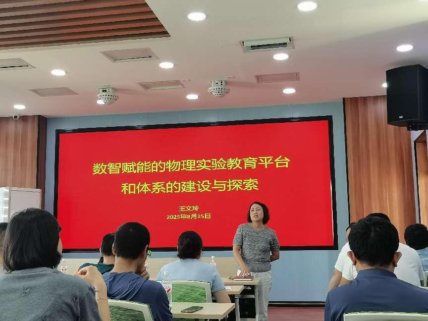8月25日上午,我院成功举办了以“数智赋能的物理实验教育平台和体系的建设与探索”为主题的教研活动。活动特邀北京航空航天大学物理学院王文玲教授作专题报告。理学院副院长韩志全主持活动,物理系全体教师参加。