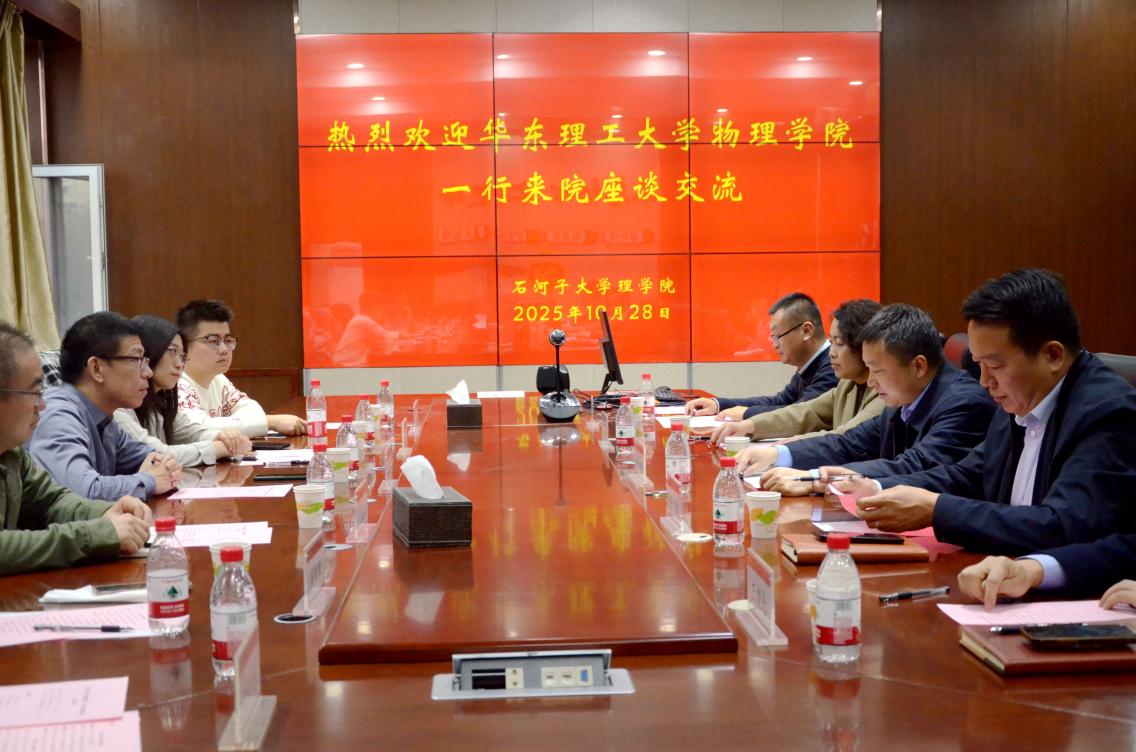 10月28日,华东理工大学物理学院院长郑致刚一行来访我院,于我院334会议室举行调研座谈会。会议由我院党委书记任建主持。校党委常委、副校长李剑出席座谈会并致辞。两院相关领导、学科负责人及教师代表参会。