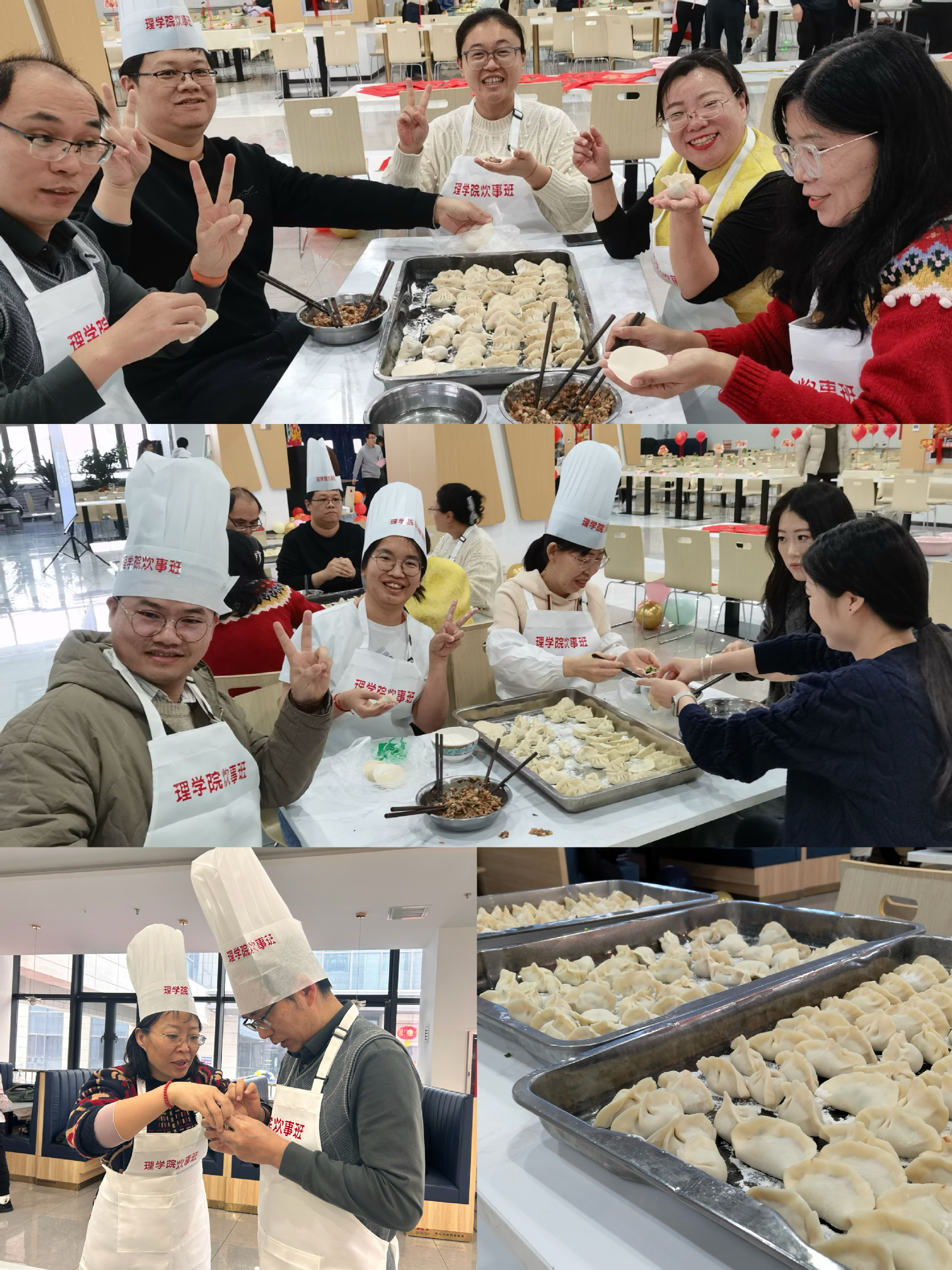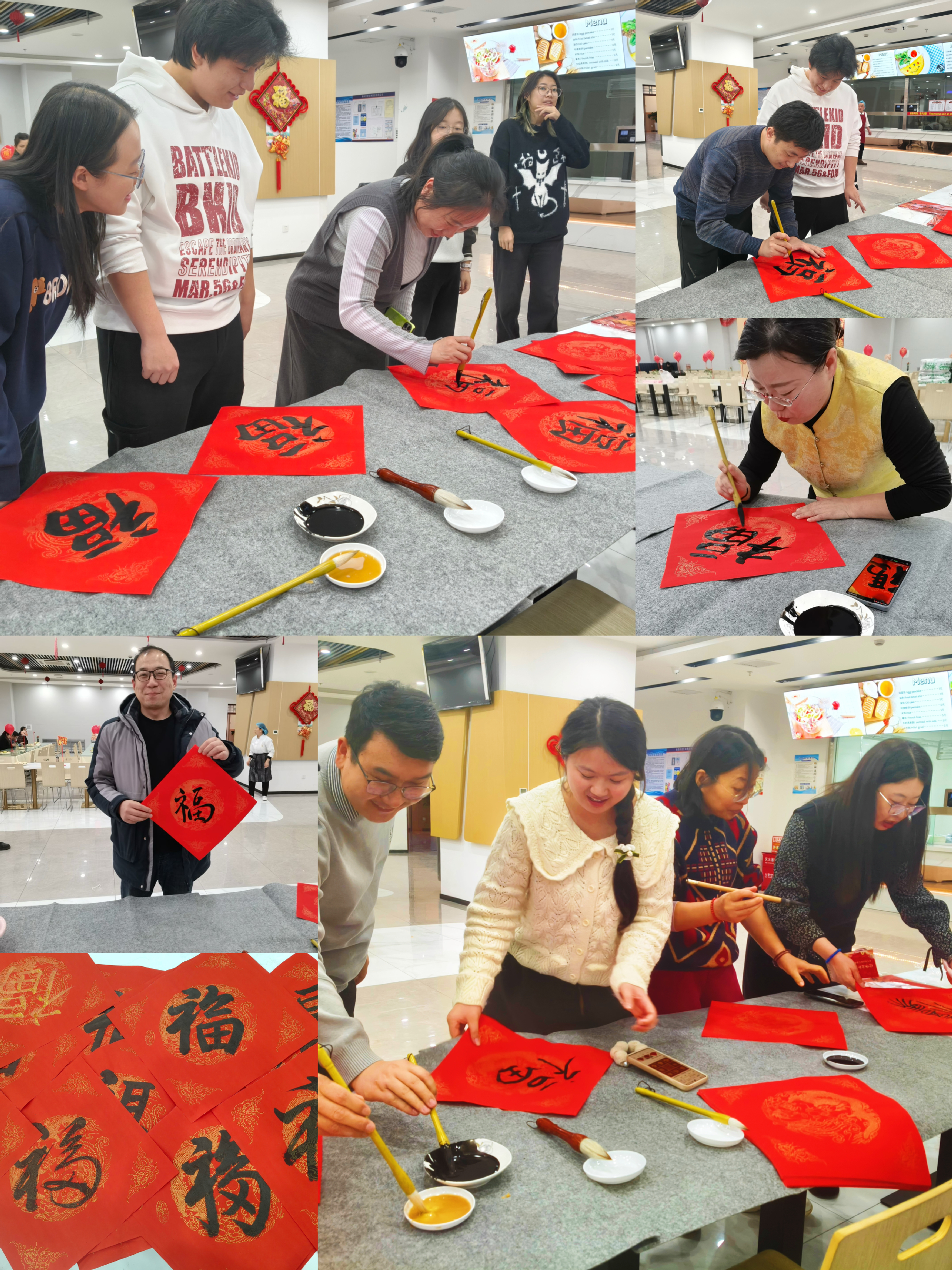 活动在“团圆饺子福满堂”的温馨氛围中拉开序幕。下午四点,学院厨艺俱乐部的老师们早已忙碌开来,擀皮、调馅、包捏,动作娴熟,笑语盈盈。热气腾腾的饺子不仅包裹着鲜美馅料,更承载着理学院大家庭亲手创造的温暖与团圆年味。与此同时,书法爱好者们泼墨挥毫,一幅幅气韵生动的“福”字跃然纸上,红纸墨香,将现场装点得喜庆祥和。大家自由交流,合影留念,在烟火气与书卷气中感受着浓浓的“家”文化。