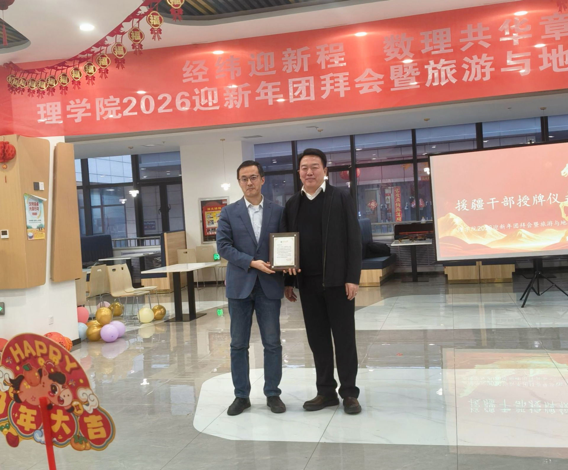 一份特别的荣誉将现场氛围推向高潮。学院为援疆干部王晓光副院长举行了简朴而庄重的授牌仪式。任建书记为其授予“援疆干部荣誉牌”,以感谢他不远千里投身学院发展、倾力奉献近千个日夜的辛勤付出。现场以热烈的掌声,向援疆干部的责任担当与突出贡献致以崇高敬意。