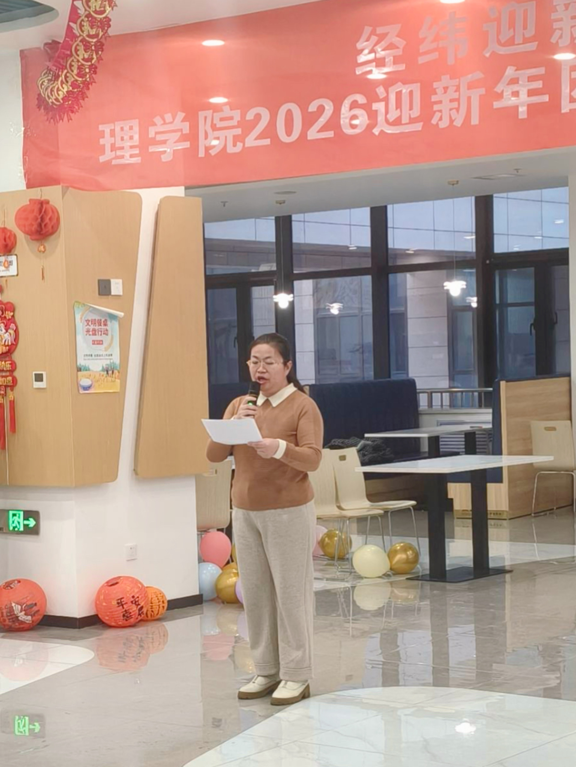 活动特别设置了深情寄语环节。青年教师代表丛红日分享了初入理学院的感悟与憧憬,充满活力;老教师代表葛桂贤以执教多年的宝贵体会,诠释了潜心育人、薪火相传的师者情怀,令人动容。学生代表则用青春洋溢的声音,为全体师长送上最真挚的新年祝福。
