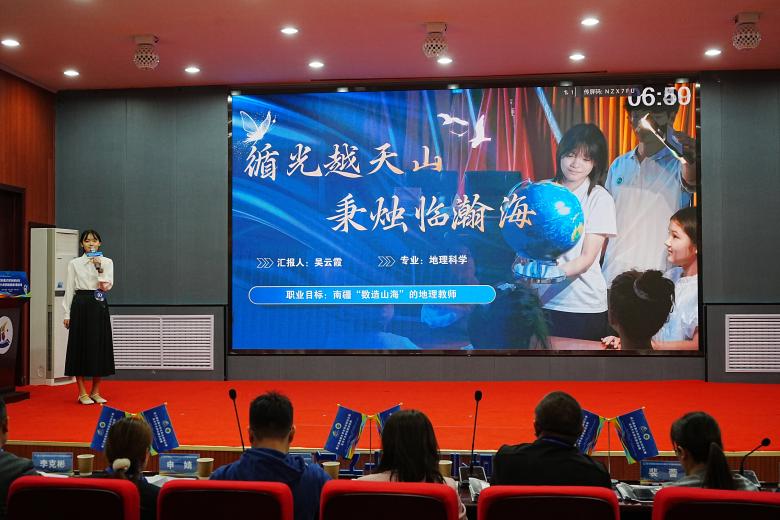 而在成长赛道决赛中,我院吴云霞同学沉着自信、发挥出色。她结合自身成长经历与地理科学专业特色,契合国家战略需求,立志成为一名“数造山海”的南疆中学地理教师。她讲述了自身的职业目标、行动路径与未来展望,真实呈现了职业规划如何助力个人成长、实现自我突破的生动故事。凭借其清晰的职业规划、扎实的成长积淀与真挚的现场陈述,吴云霞同学充分展现了理学院学子笃学力行、志存高远的精神风貌,赢得了评委的一致认可,最终夺得金奖殊荣。