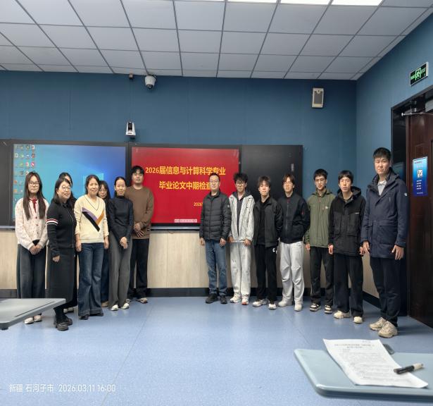 为扎实推进本科人才培养质量,严把毕业论文质量关,2026年3月11日,2026届信息与计算科学专业毕业论文中期检查工作在博学楼智慧教室顺利开展。信息与计算科学专业全体教师与毕业班学生共同参与本次检查,全面梳理论文研究进展,精准把控后续写作方向。