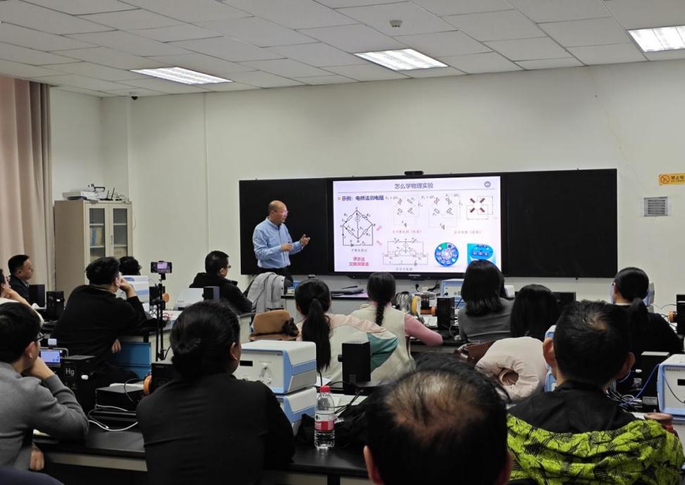 为了让先进理念落地生根,徐平教授亲自参与并指导了物理实验课程的集体备课活动。他将北航在物理实验教学中的宝贵经验倾囊相授,引导教师们围绕如何将AI数智化仪器融入具体实验项目进行深入探讨。从对经典实验的现代化改造,到设计性、探究性实验项目的全新开发,徐教授强调,关键在于借助AI的数据挖掘与智能分析能力,将传统的“按图索骥”转变为“AI启发式探索”。他鼓励教师在实验设计中设置开放式问题,引导学生利用AI工具进行数据建模、规律发现和假设验证,从而在“做中学、研中悟”,真正实现从知识接受到知识创造的能力跃升。
